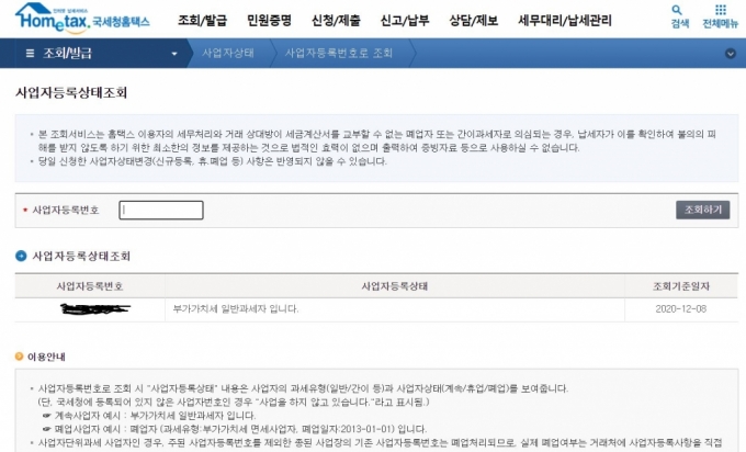 사업자등록번호 조회로 과세유형 및 휴 폐업 여부 확인 1boon