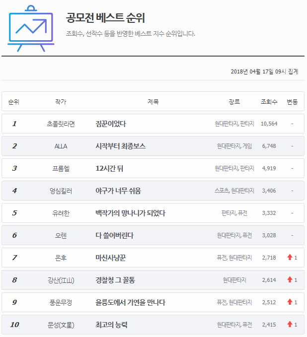 문피아 웹소설 공모전 제4회 대한민국 웹소설 공모대전 생중계 2차 인기 급상승 작품은 무엇 네이버 블로그
